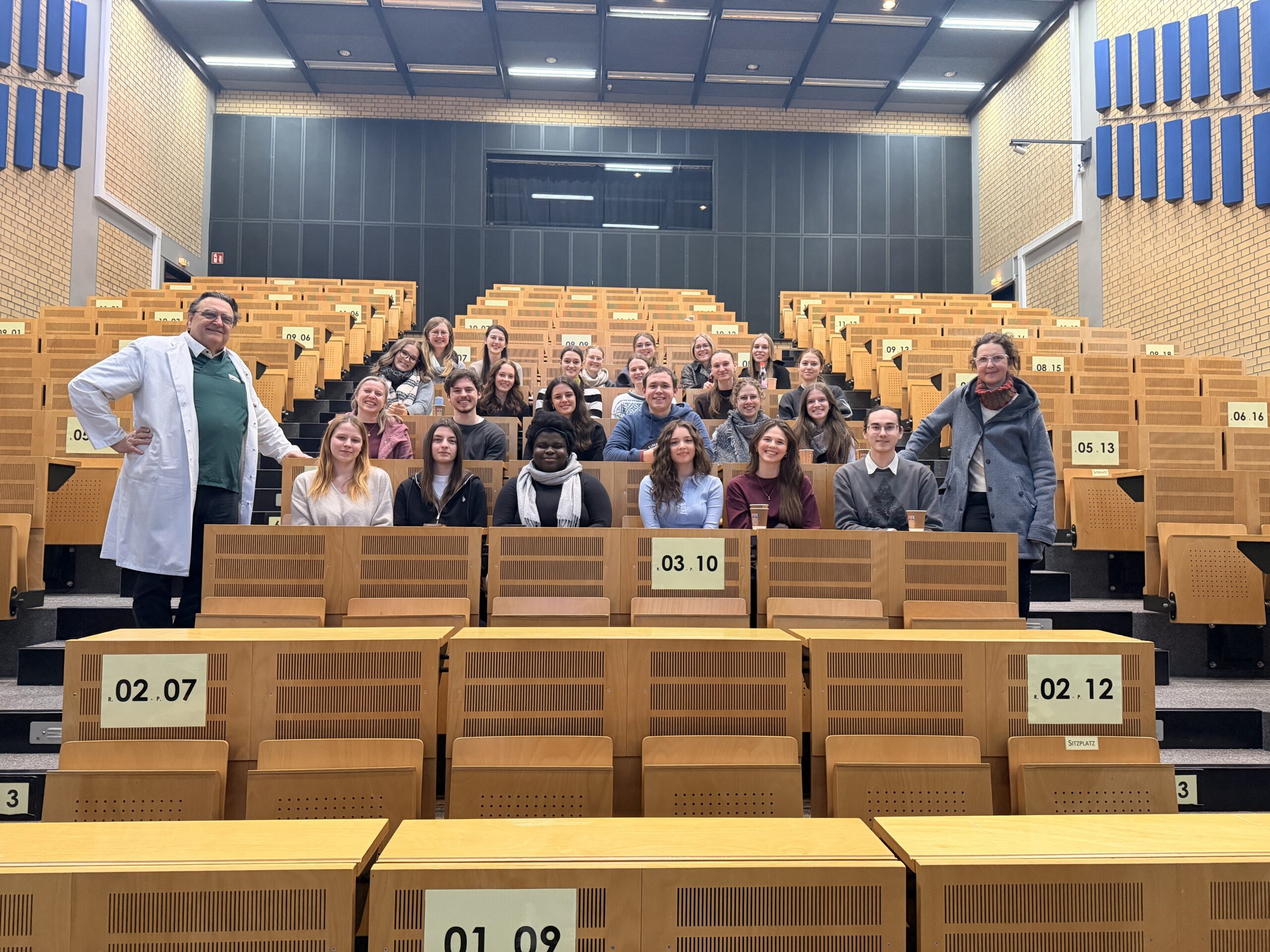 Die Klasse 13 B FOS machte sich am Donnerstag, den 13.02.2026 gemeinsam mit den Lehrkräften Frau Griesgraber, Frau Roßmann und Frau Stirner auf den Weg nach München. Ziel war der Hörsaal-Trakt des Klinikums in Großhadern. Mehrere Klassen aus Bayern waren eingeladen einen spannenden Tag zum Thema „Organspende und Transplantation – im Brennpunkt zwischen Medizin, Ethik und Recht“ zu erleben. Rechtliche Fragen zur Organspende sowie zur Transplantationsmedizin klärte Frau Jürgen vom Bayerischen Staatsministerium für Gesundheit, Pflege und Prävention. Nach einer Pause übernahm eine Vertreterin der „Deutschen Stiftung Organtransplantation“ (DSO) und erläutertet ausführlich die Voraussetzungen und den Ablauf einer Organspende. Im Laufe des Vortrags wurden viele Fragen der Schülerinnen und Schüler geklärt. Prof. Dr. Arbogast vom Klinikum Großhadern blickte anschließend auf die Anfänge der Organtransplantation zurück und zeigte anschaulich die vielen Fortschritte in der Medizin. Auch eine 48-jährige Organempfängerin war zu Gast und berichtete emotional von ihrem Leidensweg bis hin zur Herztransplantation. Dass es ihr mit Spenderherz so gut geht und sie bereits eine Bergtour bis zur Zugspitze unternommen hat, überraschte viele Zuhörer. Ein eindrücklicher Film über eine Herztransplantation bildete den Abschluss des Tages. Alle waren sich einig, dass die Fahrt noch lange in Erinnerung bleiben wird. Beim Heimweg wurde noch viel über das Thema Organspende diskutiert.