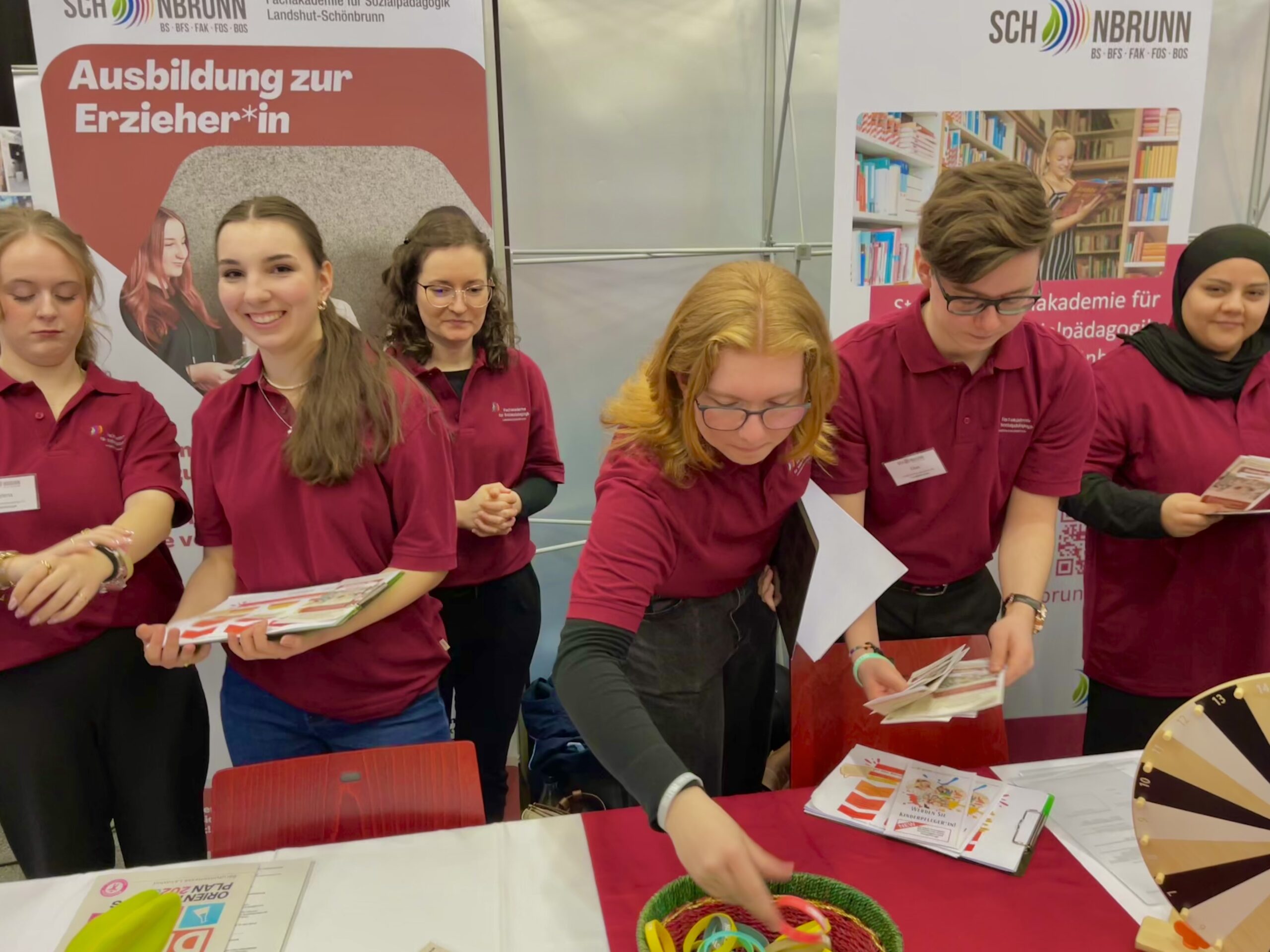 An den Ständen Nr. 47 bis 49 präsentierten sich unsere drei Einrichtungen mit einem vielfältigen Angebot: Neben den Lehrkräften waren unsere Schülerinnen und Schüler sowie Studierenden als erste Ansprechpartner vor Ort. In ihren Schul-T-Shirts waren sie leicht zu erkennen und standen den Gästen engagiert, offen und kompetent Rede und Antwort. Die persönlichen Einblicke aus erster Hand wurden von vielen Besucherinnen und Besuchern sehr geschätzt. Auch die Mitmachaktionen fanden großen Anklang: Am Stand der Berufsfachschule für Ernährung und Versorgung konnten selbstgemachtes Knäckebrot probiert und Osterplätzchen kreativ verziert werden. Die Fachakademie für Sozialpädagogik lockte mit einem Glücksrad-Quiz und kleinen Gewinnen sowie beliebten Schönbrunner Give-Aways.